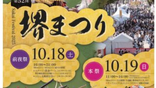 前夜祭(Minaさかい):10月18日(土)16:00〜21:00、ふとん太鼓担ぎ合いは18:30〜20:30